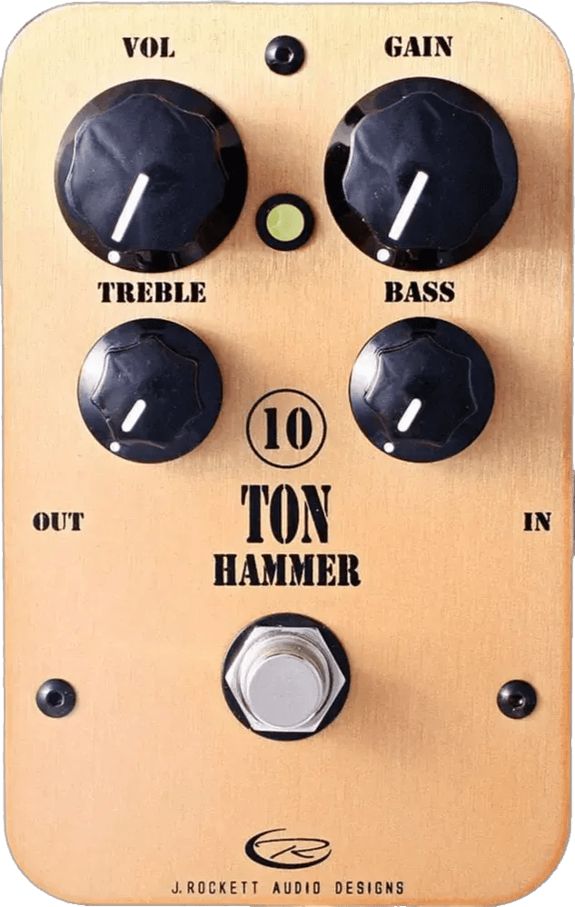 The J. Rockett Audio Designs 10 Ton Hammer is a high-gain distortion effects pedal designed to deliver 1980s metal tones. This distortion pedal features independent bass and treble controls, allowing precise adjustment of the pedal’s EQ to shape your sound. Built with true bypass switching, the 10 Ton Hammer maintains signal integrity when disengaged.