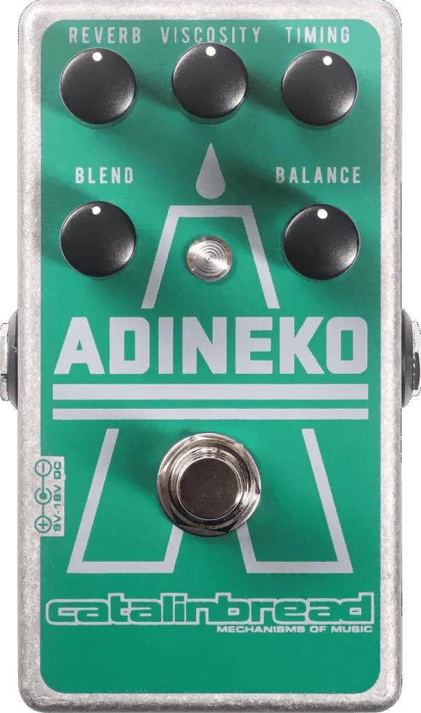 The Catalinbread Adineko is an echo, reverb, and vibrato effects pedal designed to emulate the vintage oil can delay units originally produced by Tel-Ray (later known as Morley). Using an electro-static storage approach, these units created a distinctly low fidelity, modulated delay with a unique vibrato effect influenced by the mechanical spinning disk. The Adineko effects pedal models this characteristic sound, providing a range of atmospheric analog echo and reverb tones, with controls to tailor the delay time, modulation, and blend. This pedal uses true bypass switching and is compatible with both instrument and pedalboard setups.