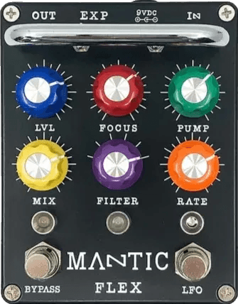 The Mantic Effects Flex Pro is a PLL-based modulation pedal designed to generate glitch pitch modulation, filter sweeps, and variable LFO effects. This PLL effects pedal introduces analog frequency shifting, dynamic filter resonance, and a broad range of pitch-locked and modulated tones. Core controls include a Mix knob for blending dry and effected signal, a Filter range selector, and a variable speed LFO for real-time modulation. The Flex Pro features an expression pedal input for external control of the LFO rate, providing expanded modulation options.