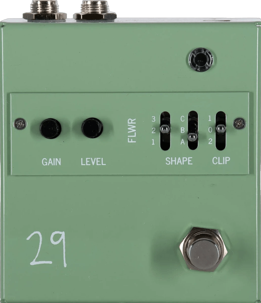 The 29 Pedals FLWR is an analog overdrive pedal designed to deliver up to 45dB of gain, with tonal range extending from mild breakup to fuzz-level saturation. This effects pedal features two gain stages, with independent SHAPE controls for the first stage and a dedicated GAIN control for the second. Users can modify the clipping diode module to explore a variety of clipping characteristics. The FLWR overdrive pedal provides medium input impedance for warmer tones when used first in a signal chain, and a slightly higher output impedance allows for versatile pedalboard integration. Powered by 7.5–35 volts AC or DC (any polarity), the FLWR employs true bypass switching.