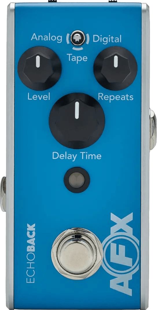 - Delay effects pedal with analog, digital, and tape delay voicings