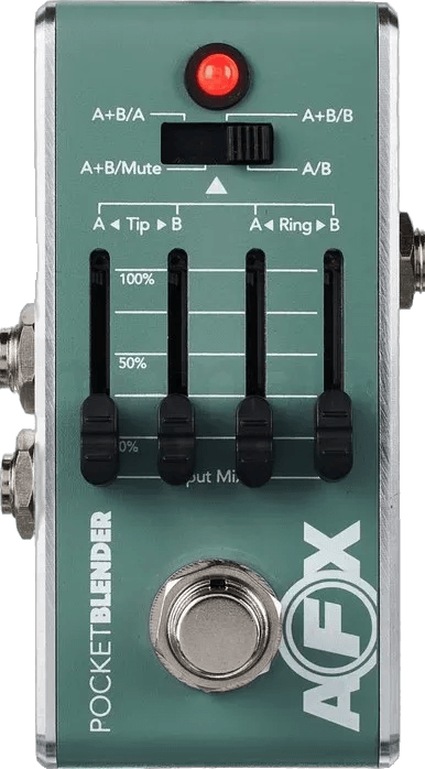 The Fishman AFX Pocket Blender is a compact utility pedal that functions as an A/B/Y splitter, DI box, two-channel mixer, and clean boost. Designed for acoustic-electric instruments with TRS outputs, this Fishman effects pedal separates tip and ring signals for flexible routing options. Four switchable A/B/Y configurations are available, selectable via footswitch, allowing immediate control over signal paths. The onboard input mixer features four independent level faders, providing detailed balance and blending of two input sources, and enabling two unique presets. Connectivity includes a balanced DI output, standard A/B/Y output, and a ground lift toggle to address common stage and recording setup needs.