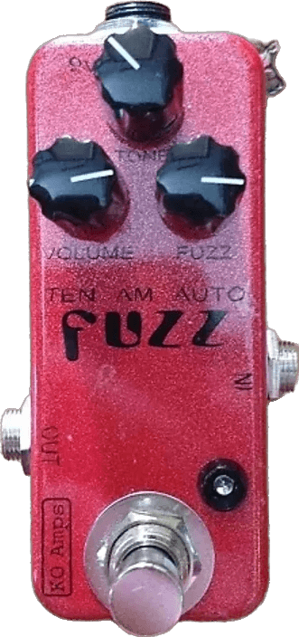 The KO Amps 10AM Auto Fuzz is a fuzz stompbox modeled after the classic Ibanez Standard fuzz circuit, with key modifications for enhanced performance and versatility. This fuzz effects pedal features a JFET input for improved signal handling, germanium diodes, and carefully selected transistors in the main circuit. The 10AM Auto Fuzz is equipped with a tone control knob, providing variable adjustment between a scooped midrange sound and a flat EQ, replacing the fixed switch from the original design. This update allows for precise tonality control while retaining the vintage character and delivering increased output volume.