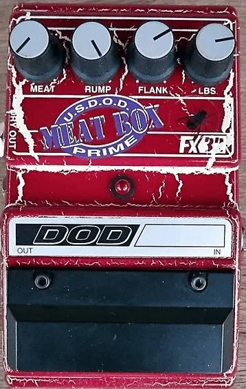 The DOD FX32 Meatbox Subsynth is a vintage subharmonic synthesizer effects pedal designed to add deep bass frequencies and sub-octave synthesis to your signal. Originating from the 1990s, the FX32 Meatbox generates subharmonic tones and extreme low-frequency output, making it notable among octave and bass synth pedals. Analog circuitry blends the original signal with synthesized subharmonics, and onboard controls allow for adjustment of Output, Sub, Octave, and Low frequency levels.