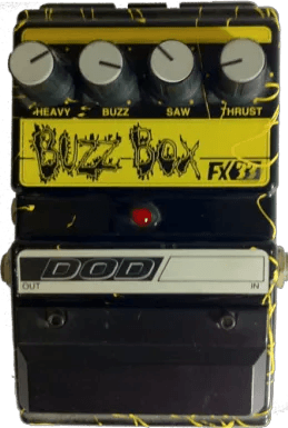 The DOD FX33 Buzz Box is a distortion effects pedal engineered to deliver high-gain drive and unique octave fuzz tones. This DOD distortion pedal blends circuitry from the FX69 Grunge pedal with elements of the MXR Blue Box, resulting in a sound characterized by intense fuzz and pronounced octave effects. Built for dynamic versatility, the FX33 Buzz Box features standard footswitch operation, a simple control layout, and rugged construction for consistent performance. This effects pedal operates in mono and supports true bypass switching for maintaining signal integrity when disengaged.
