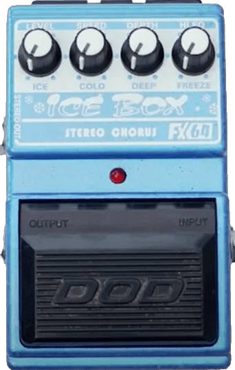 The DOD FX64 Ice Box Chorus is a stereo chorus effects pedal designed to deliver classic modulation with added tonal control. This chorus stompbox features level, speed, and depth controls, allowing users to shape the intensity and movement of the effect. An additional high EQ knob provides the option to enhance high-frequency presence, making it possible to tailor the voice of the chorus to individual preference. Stereo outputs are included for wide, spacious sounds and versatile rig integration.