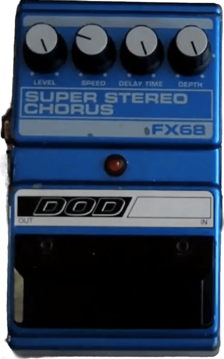 The DOD FX68 Super Stereo Chorus is a stereo chorus effects pedal designed to add richness and dimension to your sound. This digital chorus pedal works by introducing a variable delay between 4 and 6 milliseconds to the input signal, then modulating this delay continuously. This process creates subtle pitch variations in the delayed signal, which blends with the original signal to produce a spacious, ensemble-like chorus effect. The FX68 offers true stereo output, allowing for wide, immersive modulation in a stereo rig.