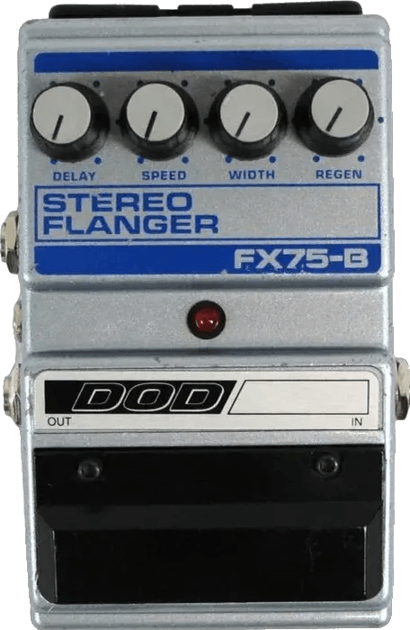 The DOD FX75B Stereo Flanger is a modulation effects pedal that delivers a range of flanging, chorus, and vibrato sounds. It features stereo output for expanded signal routing options and a compact design suitable for various music setups. The FX75B utilizes regeneration controls for adjustable feedback and depth, allowing musicians to dial in a wide variety of classic modulation tones. True bypass circuitry ensures signal integrity when the pedal is disengaged. This stereo flanger pedal is compatible with a wide array of instruments and setups.
