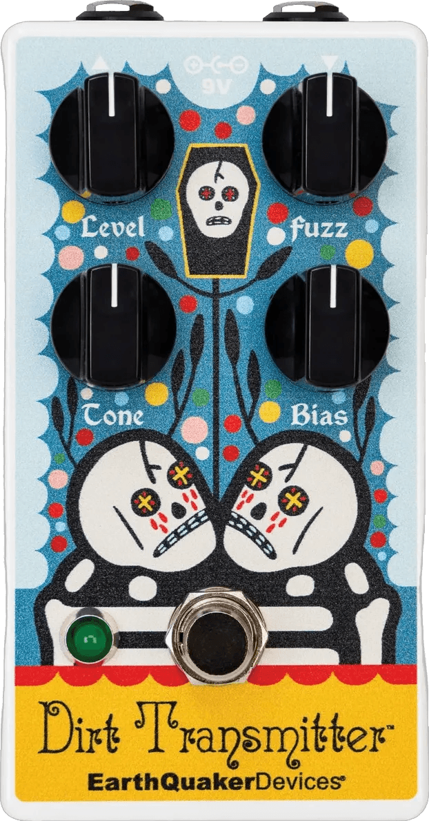 The EarthQuaker Devices Dirt Transmitter Rancho De La Luna Limited Edition is a silicon fuzz effects pedal designed to deliver a wide range of drive tones, from overdrive to fuzz. Utilizing rare silicon transistors, this EarthQuaker Devices fuzz pedal provides increased gain and a biting, yet rounded top-end response. Controls include Level, Fuzz, Tone, and Bias, allowing users to adjust output volume, saturation, frequency response, and transistor bias. The Bias control lets musicians move from full, saturated fuzz to gated, synth-like textures by altering the transistor voltage. The Tone knob shapes the high-frequency content, providing options for brighter or darker fuzz sounds. This pedal supports use with bass.
