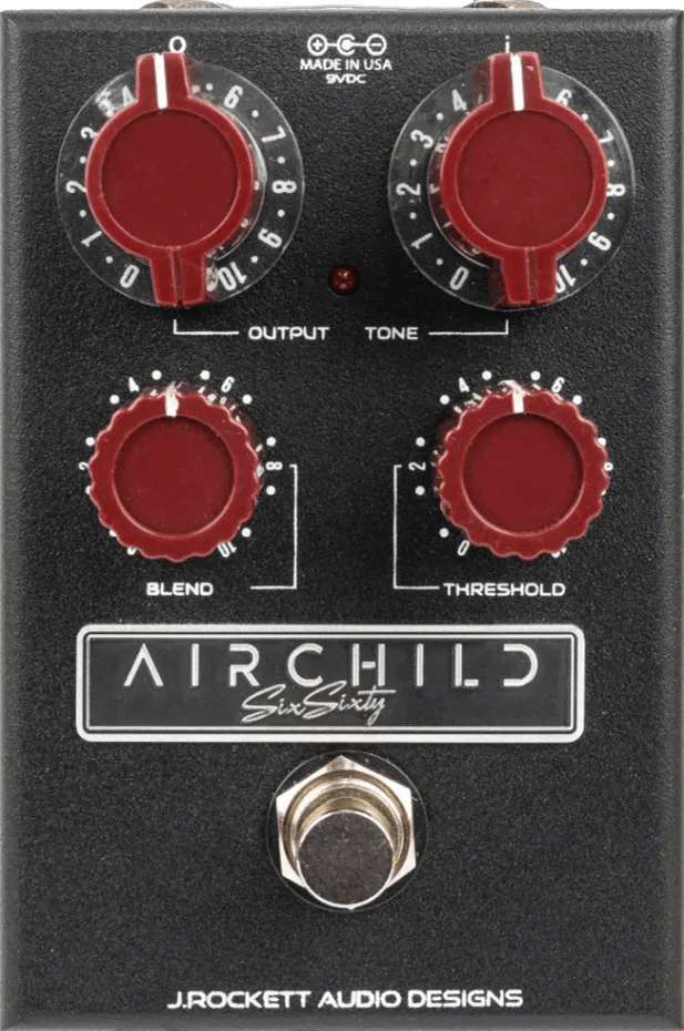 The J. Rockett Audio Designs Airchild SixSixty is an analog compressor pedal designed to capture the sonic character of the iconic vintage 660 studio compressor. This compressor effects pedal offers studio-style dynamic control in a compact stompbox format. The Airchild SixSixty features a range of onboard controls for shaping compression response and tone, allowing for precise adjustment of your signal dynamics. Built with true bypass switching, it preserves signal integrity when not engaged.