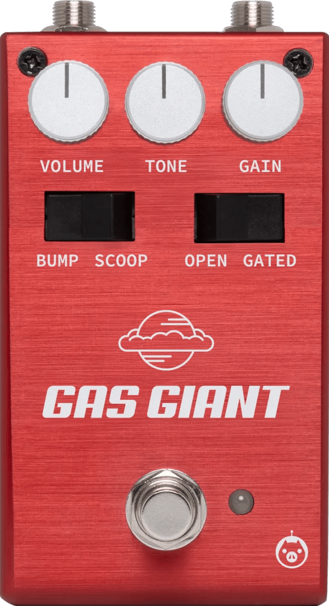 The Pigtronix Gas Giant is a high-gain analog fuzz pedal designed to deliver a range of classic and modern fuzz tones. Utilizing quad-matched transistor sets, this fuzz stompbox offers consistent tone across all units. Core controls include Gain, Volume, and a dual-function Tone knob. The Tone control features two selectable voicing options: a traditional midrange Scoop and the Pigtronix Bump, which emphasizes the midrange frequencies. An integrated noise gate reduces unwanted noise, maintaining clarity even at high gain settings. The Gas Giant operates in mono and is configured for standard pedalboard integration.