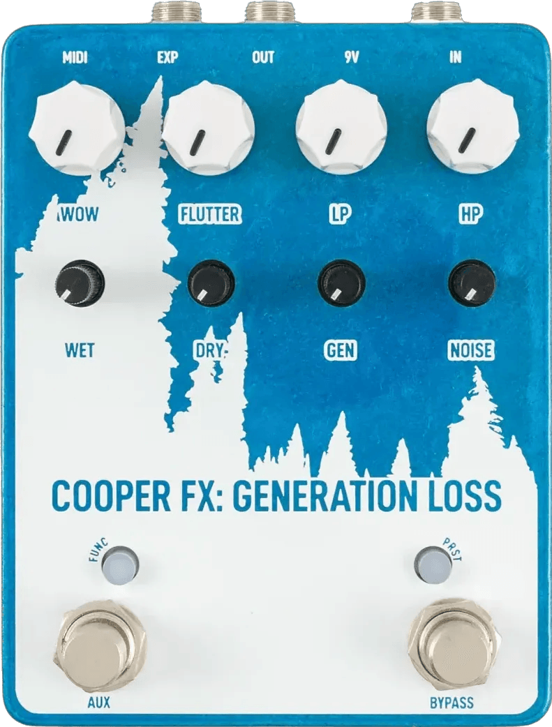 The Cooper FX Generation Loss v2 is a stereo lo-fi effects pedal designed to replicate the characteristics of tape degradation. It combines adjustable elements of random pitch modulation, noise, filtering, and sample rate reduction to recreate the artifacts commonly introduced by repeated copying on magnetic tape media. This tape emulation pedal provides hands-on control over key parameters, allowing users to shape the bandwidth, pitch instability, and noise floor of their audio signal.
