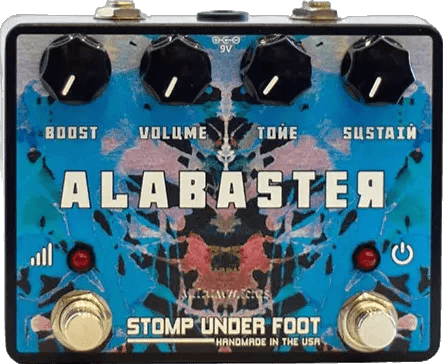 The Stomp Under Foot Alabaster is a hybrid fuzz pedal that combines Russian-inspired fuzz circuitry with an independent clean boost. Designed for versatile signal shaping, the fuzz and boost sections can be engaged individually or together, allowing for a range of saturated textures or a transparent volume increase. The Alabaster fuzz stompbox delivers classic Russian-style tones and features straightforward controls for easy sound adjustment. Limited release.