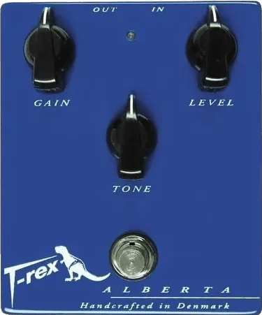 The T-Rex Alberta is a low-gain overdrive pedal designed to deliver added clarity and subtle harmonic drive to electric signals. This T-Rex effects pedal is engineered for use as a signal boost or for introducing mild overdrive, producing less gain and tonal harshness compared to high-gain alternatives. The control layout typically features knobs for drive, level, and tone adjustment, providing flexibility for a variety of musical styles. The original blue enclosure and hand-built construction in Denmark remain consistent with previous versions. This overdrive stompbox is equipped with true bypass switching to preserve signal integrity when bypassed.
