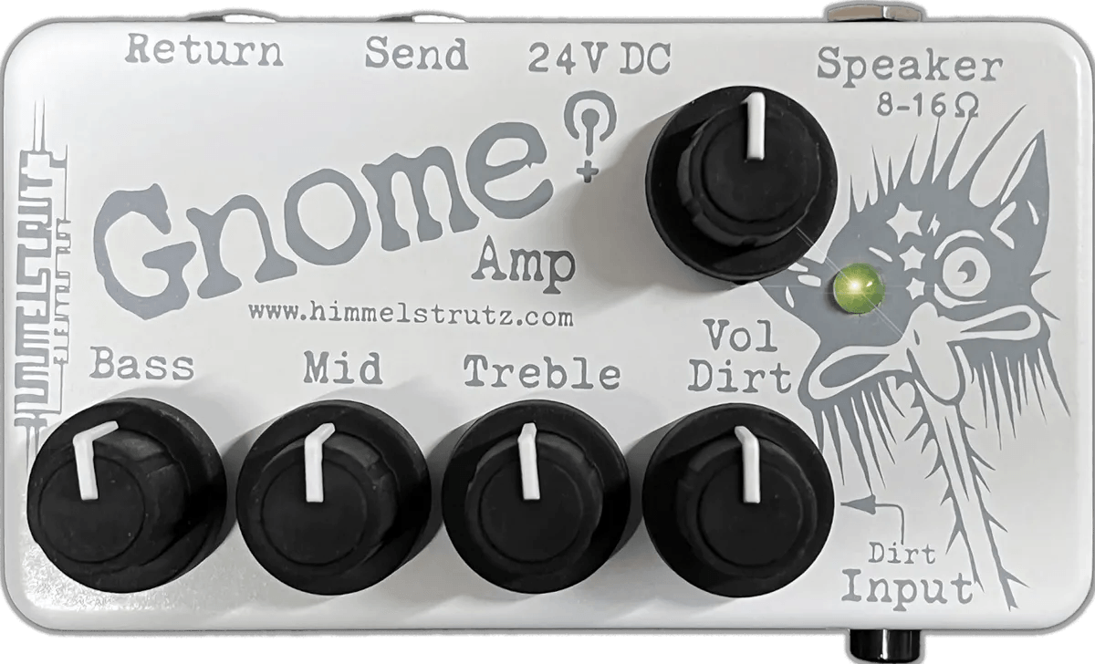 The Himmelstrutz Gnome is a compact valve amplifier designed to deliver classic tube amplifier tones with updated construction for reliability and ease of use. This hand-built amplifier maintains the dynamic response, touch sensitivity, and harmonic warmth characteristic of traditional valve amps, while incorporating modern engineering for enhanced durability and portability. The Gnome is constructed with an emphasis on craftsmanship, offering a simplified control layout to keep the user experience straightforward. This amplifier is designed to provide the authentic tonal qualities of valves in a lighter and more versatile format.
