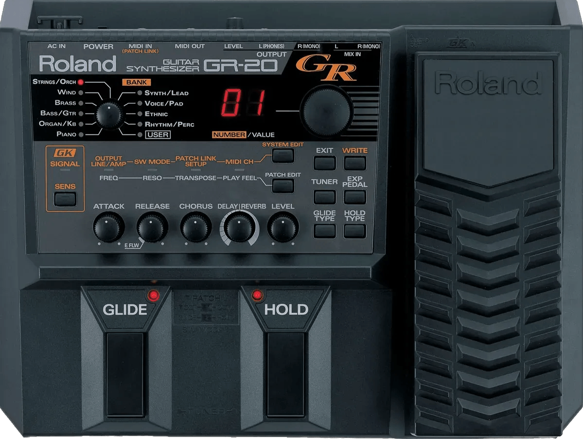 - Guitar synthesizer module for use with electric guitars (GK-3 Divided Pickup included)