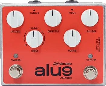 The Dedalo Fx Aliaser ALU-9 is a bitcrusher effects pedal designed to transform audio signals through 9-bit resolution sampling and adjustable sample rate reduction. Utilizing a microcontroller at its core, the ALU-9 allows users to lower the sample rate well below standard audio ranges, resulting in pronounced digital distortion and aliasing effects. The pedal is designed to reshape harmonics and introduce unique lo-fi textures, while control parameters let users tailor the level of resolution and sample rate reduction in real-time. True bypass switching preserves the signal when the effect is disengaged.