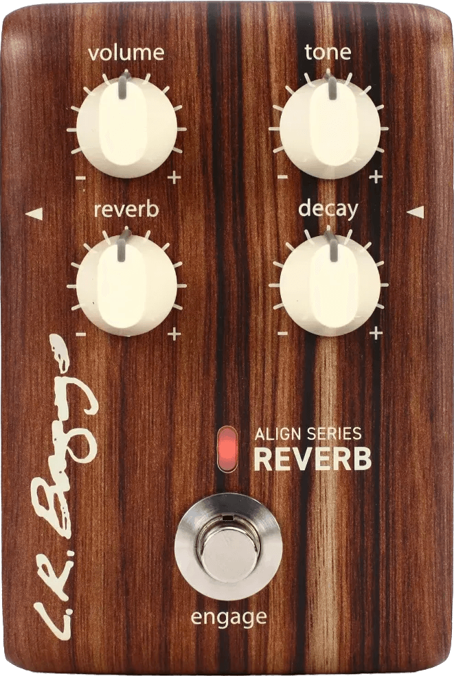 The LR Baggs Align Series Reverb is a reverb effects pedal designed to enhance the tone and dynamic range of acoustic instruments. This analog reverb pedal blends wet and dry signals using a sidechain circuit, maintaining clarity and presence while adding spacious reverb. The onboard analog EQ shapes the effect to match the characteristics of acoustic playing, and a dedicated tone control allows for adjustments from warm, muted reverb to a brighter, open sound. True bypass circuitry ensures the original signal remains unaffected when the pedal is disengaged.