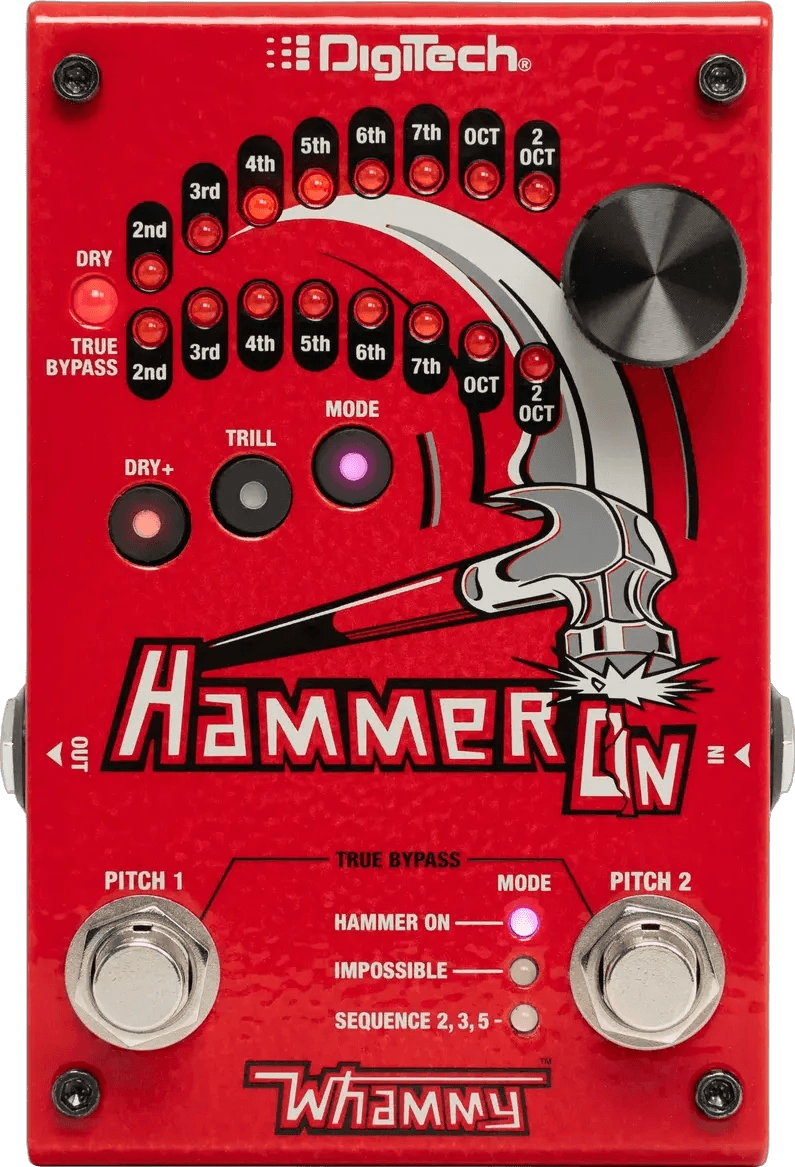 The DigiTech HammerOn is a hands-free effects pedal designed for generating hammer-on notes and expanding performance options for musicians. This DigiTech effects pedal allows users to trigger hammer-on articulations via foot control, enabling complex licks and riffs without requiring traditional hand techniques. It features a straightforward stompbox design suitable for both standard and bass instruments, offering seamless integration into an existing pedalboard setup.
