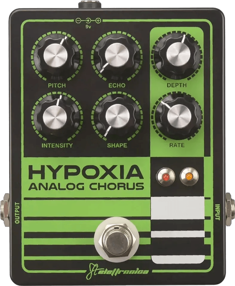 The FTelettronica Hypoxia Analog Chorus is an analog chorus effects pedal designed to deliver a diverse range of modulation tones. Featuring a dedicated LFO modulation section, the Hypoxia provides both subtle and pronounced chorus effects, allowing for precise shaping of sound textures. The pedal is equipped with user-adjustable controls to shape depth, rate, and overall timbre, making it suitable for a variety of musical applications. True bypass switching preserves signal integrity when the unit is off. This pedal supports both standard instrument connections and features compatibility with bass instruments.