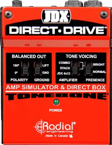 The Radial Engineering JDX Direct-Drive is an amp simulator pedal designed for pedalboard integration, allowing direct connection to PA systems while delivering authentic amplifier tones. This amp simulator effects pedal offers three selectable voicing modes: JDX (emulating a dynamic mic’d 4x12 cabinet), a British tube head amplifier, and a clean twin combo amp. Each mode provides specific tonal characteristics for a range of applications, ensuring consistent amp emulation when routing pedals directly to front-of-house or recording setups.