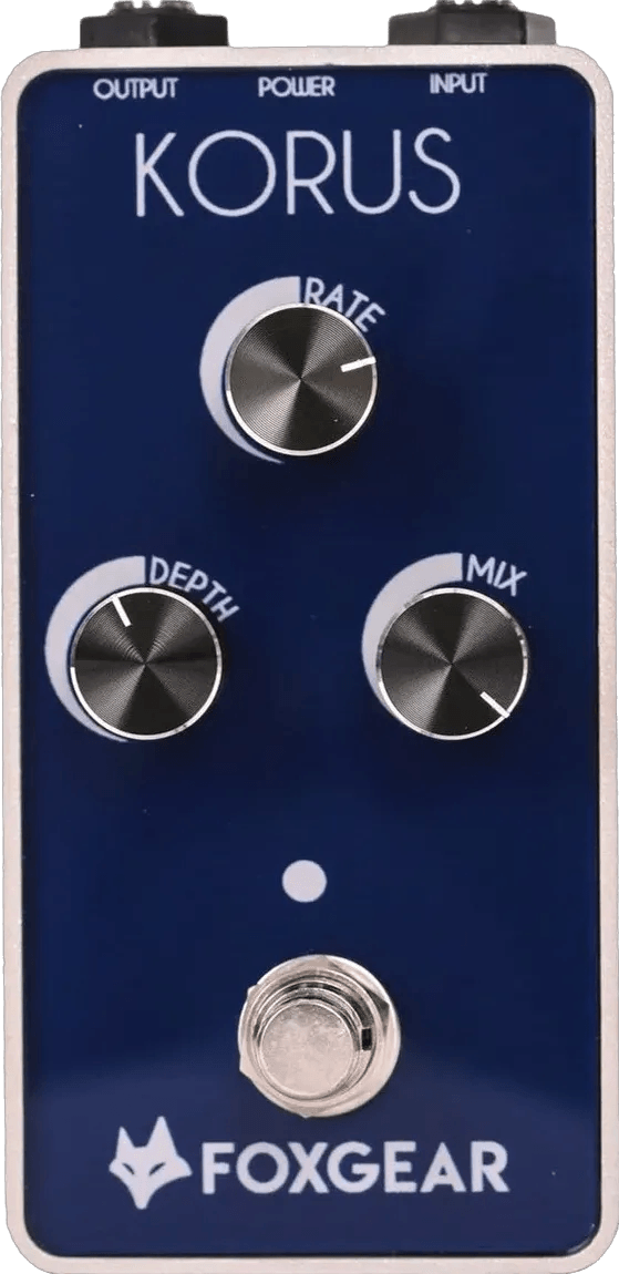 The Foxgear Korus is an analog chorus effects pedal designed to deliver a wide range of vintage chorus sounds, from subtle modulation to classic retro textures, depending on the control settings. This chorus pedal employs true bypass switching to maintain signal integrity when the effect is disengaged. Designed for transparent operation, the Korus aims to preserve the character of your original tone while minimizing unwanted noise. All controls are top-mounted for easy adjustment and pedalboard integration.