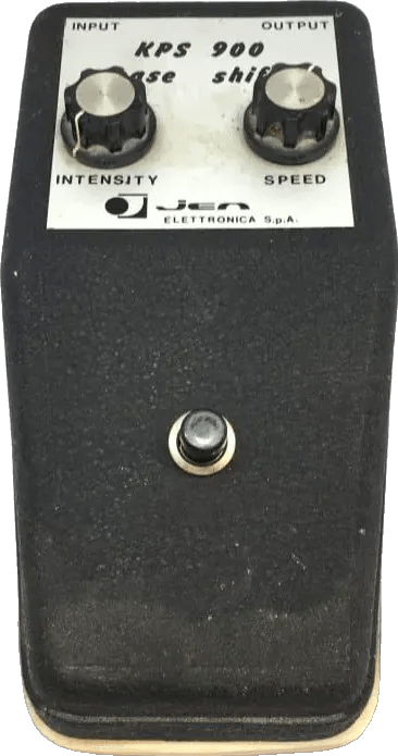 The Jen KPS 900 Phase Shifter is a vintage analog phase shifter pedal that produces a distinctive modulation effect using a CD4007 chip in place of traditional JFET circuitry. This design allows for consistent phasing without the need for transistor matching, resulting in its recognizable sweeping sound. The KPS 900 delivers a multi-stage phaser effect well known among vintage effects pedal collectors and offers a unique tonal character compared to other phase shifter pedals from its era.