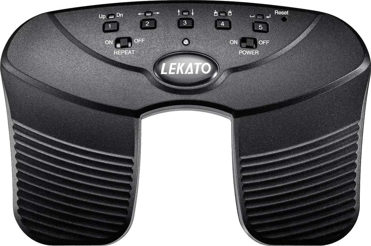The Lekato WT-1 Bluetooth Page Turner is a wireless foot controller pedal designed for hands-free page turning and scrolling functions. Compatible with iOS, Windows, and Android devices, this Bluetooth controller pedal offers a wireless operating range of up to 33 feet. The unit is powered by a built-in rechargeable lithium battery, supporting over 60 hours of continuous use on a single charge. The pedal features an ergonomic arc design with anti-slip rubber pads, and is housed in a durable ABS enclosure for stability during operation.