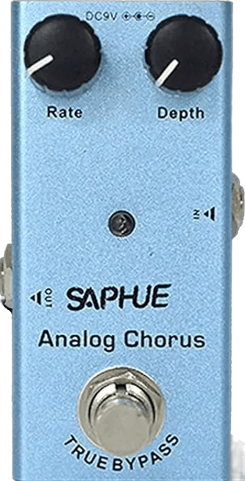 The Saphue Analog Chorus is an analog chorus pedal designed to deliver traditional circuit-chorus effects using a classic BBD chip. It includes dedicated Rate and Depth controls, allowing users to adjust modulation speed and intensity for a range of chorus textures. This effects pedal provides analog signal processing for chorus sounds with straightforward knob-based controls.