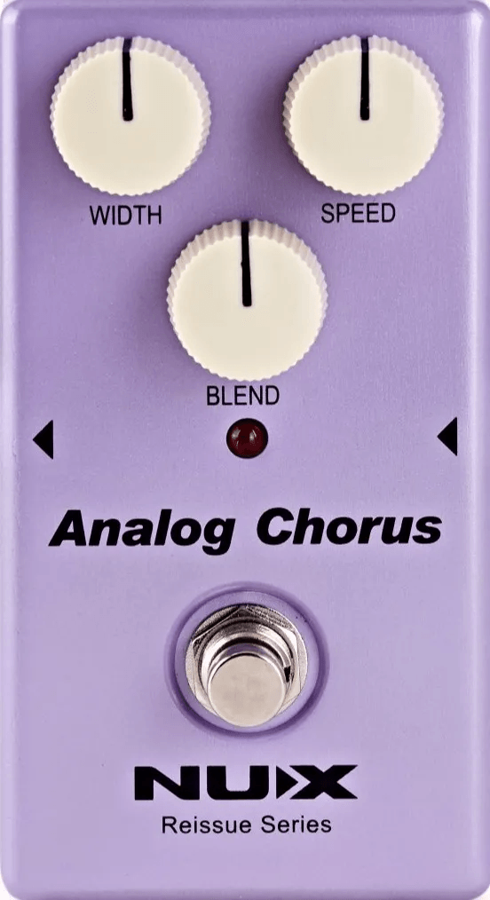 The NUX Analog Chorus pedal is an analog chorus effects pedal from the Reissue Series, designed to deliver the classic chorus tones of the 1980s. Utilizing a pure analog Bucket-Brigade Device (BBD) circuit, this stompbox produces chorus effects ranging from subtle, warm shimmer to more pronounced modulation. Onboard controls allow users to adjust Rate, Depth, and Level for versatile chorus sound shaping. This true bypass pedal ensures signal integrity and minimizes unwanted noise when disengaged.