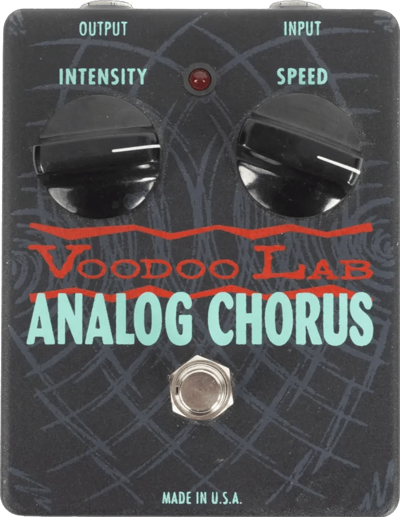 The Voodoo Lab Analog Chorus is an analog chorus effects pedal designed to deliver modulation based on the 1976 CE-1 circuit. This pedal produces a range of sounds, from thick analog doubling effects to richly modulated chorus tones and rotating speaker-like modulation. Built with true bypass switching, the Voodoo Lab Analog Chorus maintains signal integrity when the effect is disengaged.