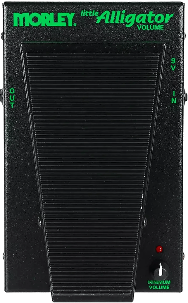 The Morley Little Alligator Volume Pedal is an optical volume control effects pedal designed to provide smooth, linear volume adjustment. Its linear taper enables uniform volume changes across the pedal’s travel, avoiding abrupt shifts found in pedals with logarithmic response. This Morley volume pedal features a dedicated minimum volume knob, allowing precise control over the lowest output level, and supports a fixed minimum volume setting for easy adjustment during performance. The pedal utilizes optical circuitry for silent operation and reduced mechanical wear.
