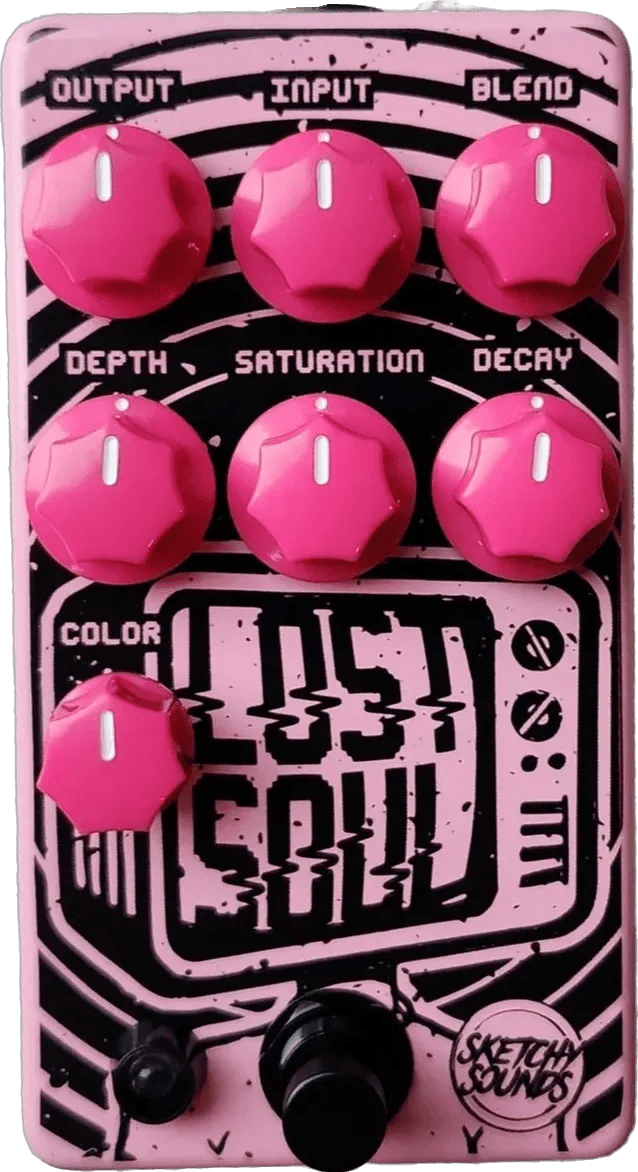The Sketchy Sounds Lost Soul is a multi-effect stompbox that combines analog-style echo, vibrato, wow & flutter, and fuzz in a single unit. Designed for musicians seeking tape-inspired modulation and saturation, this effects pedal offers controls for irregular tape echo textures, pitch modulation, and variable fuzz, making it capable of classic slap-back delay as well as heavily affected experimental tones. Each effect can be adjusted independently or blended together, allowing for a range of time-based and saturation effects. The Lost Soul features dedicated control knobs for delay, modulation, and fuzz parameters, with true bypass switching for transparent signal flow when disengaged.