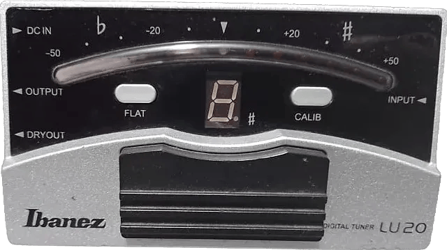 The Ibanez LU20 digital chromatic pedal tuner provides precise tuning functionality for electric instruments on a pedalboard. This Ibanez effects pedal features a wide LED display for clear visibility during tuning and utilizes a 3-color LED system to indicate flat, in-tune, and sharp notes. Built with a durable die-cast chassis, the LU20 uses a true bypass circuit to maintain signal integrity when disengaged.