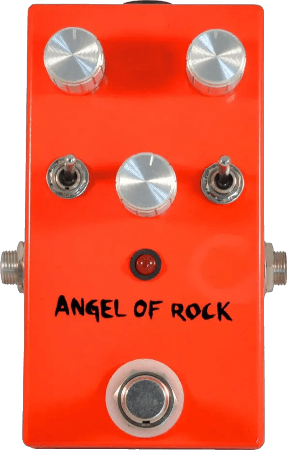 The Vein-Tap Angel of Rock Distortion is a compact distortion effects pedal designed to deliver saturated rock distortion sounds. This Vein-Tap distortion pedal features a streamlined design for straightforward operation and is engineered to provide consistently high-gain output. Built to fit on any pedalboard, the Angel of Rock Distortion operates via standard 9V DC power supply, and features true bypass switching for signal integrity when the effect is not engaged.
