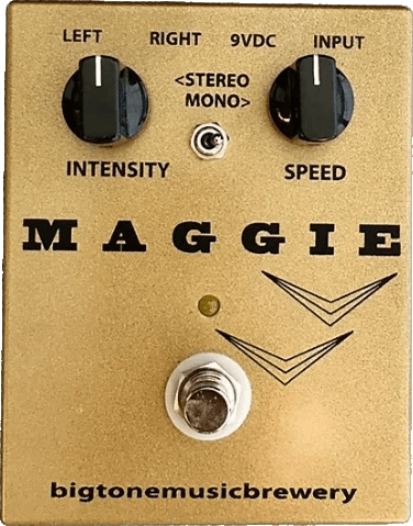 The Big Tone Music Brewery Maggie is an analog vibrato effects pedal designed to emulate Magnatone-style pitch-shifting vibrato. This stereo modulation pedal features dual left and right inputs and outputs, supporting both stereo and mono signal routing. The Maggie vibrato pedal is fully analog and manufactured in Washington, USA.
