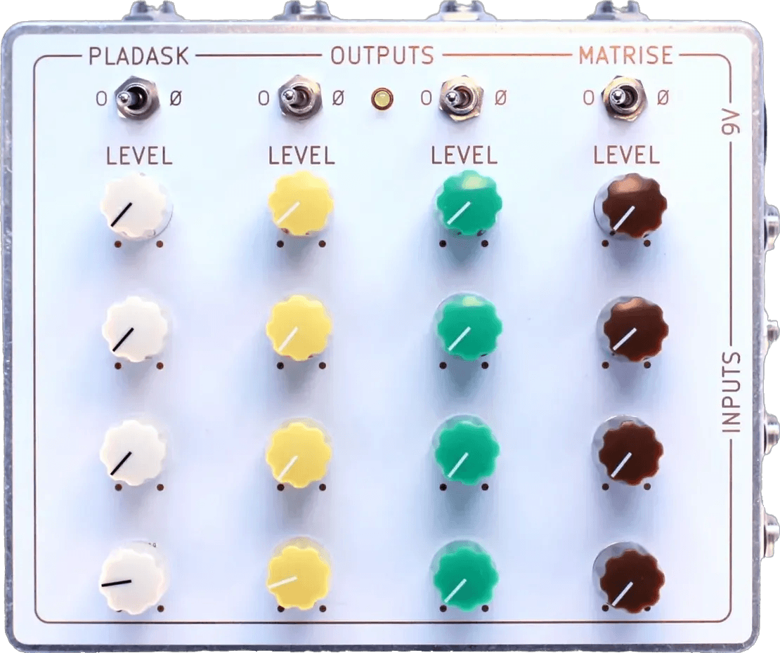 - Matrix patchbay audio mixer module with 4 inputs and 4 outputs