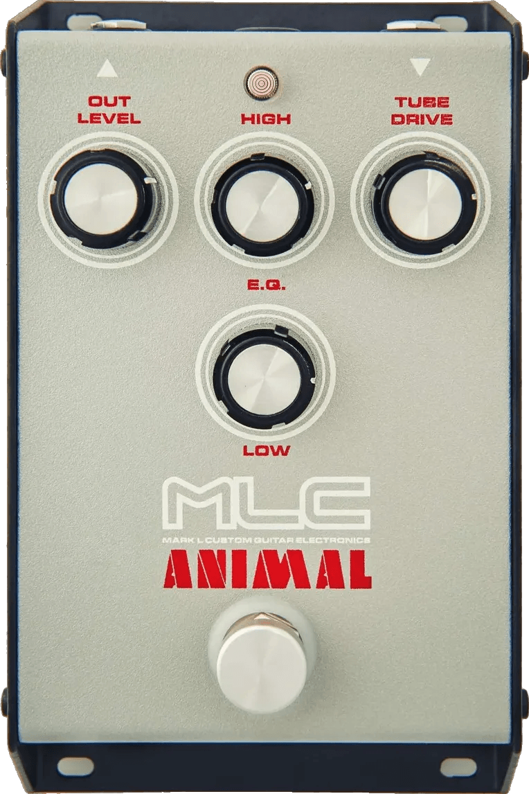 The MLC Amps Animal is a hybrid overdrive and distortion pedal designed to deliver a range of tube-driven tones, from subtle overdrive to high-gain distortion reminiscent of a classic Marshall JCM800. This booster/overdrive effects pedal uses a combination of IC circuitry and a TAD Mullard-style 12AX7 vacuum tube preamp section. The core of the distortion comes from a Class A preamplifier using a BURR BROWN OPA2134 op-amp, which provides hard clipping before the signal is shaped and colored by the vacuum tube. The result is a smooth transition between light overdrive and heavy, saturated crunch. This MLC effects pedal incorporates a hybrid fuzz-preamp design and is suitable for a variety of overdrive and distortion needs.