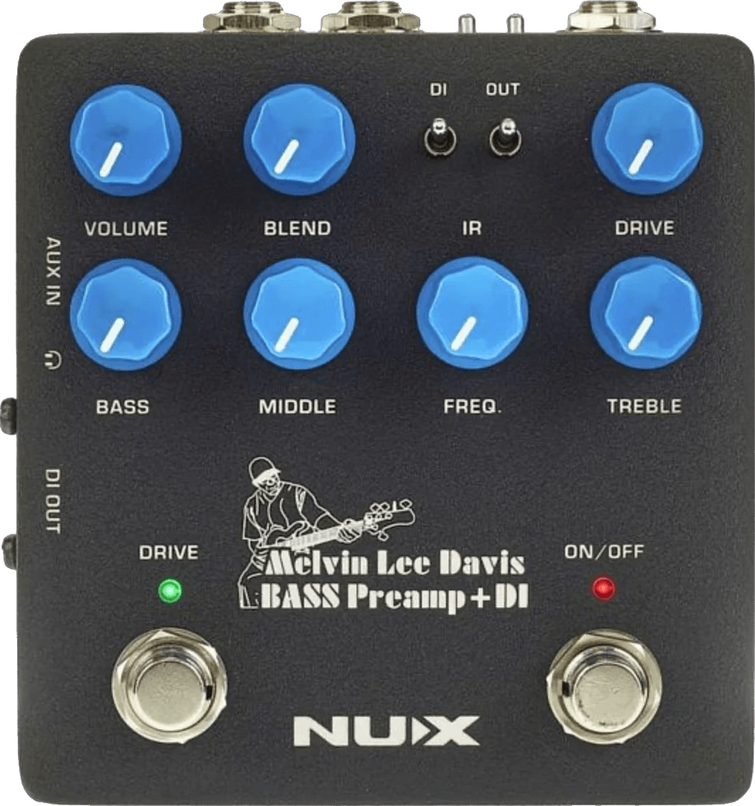 The Nux MLD Bass Preamp + DI is a bass preamp pedal combining DI box functionality, impulse response (IR) loading, and USB audio interface capability. Developed in collaboration with bassist Melvin Lee Davis, this Nux effects pedal features bass, treble, and fully sweepable midrange EQ controls, allowing for detailed frequency shaping. The unit provides IR loading for cabinet simulation and offers direct output for stage and studio integration. Suitable for 4, 5, 6, and 7-string basses, this preamp pedal delivers an extended frequency response to accommodate a wide range of instruments.