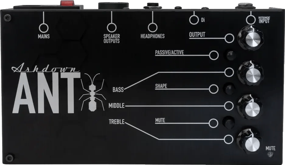 The Ashdown ANT is a pedalboard bass amplifier delivering 250 watts of output power in a compact enclosure. Designed for pedal-based rigs and setups utilizing modelers or effects processors, this amp pedal features a 3-band EQ and a switchable shape pre-set for tone shaping. The ANT provides straightforward connectivity with its balanced XLR DI output and line input, along with an auxiliary input and headphone out for practice scenarios. Engineered for efficient integration into pedalboards, the Ashdown ANT bass amp pedal combines portable amplification with core bass amp controls.