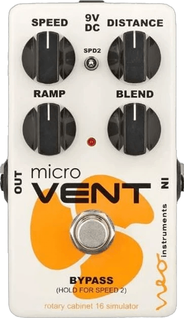 The Neo Instruments micro Vent 16 is a rotary speaker simulator pedal designed to emulate the sound of a classic Vibratone cabinet with a 10-inch speaker and single drum rotor. This modulation effects pedal uses a custom algorithm to reproduce the spatial characteristics of the rotary speaker, including the adjustable virtual microphone distance from the cabinet. Compared to the micro Vent 122, the micro Vent 16 delivers a more focused and less intricate rotary effect.