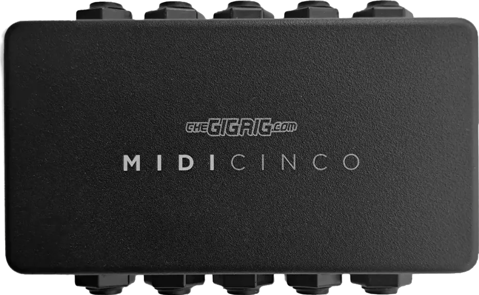 The MIDI Cinco is a passive pedalboard interface designed for audio and MIDI routing. It features five mono/TRS isolated audio inputs and outputs, along with a dedicated 5-pin DIN MIDI thru connection. Built for streamlined pedalboard integration, the MIDI Cinco allows for direct signal pass-through, supporting guitar, amplifier, effects loop, or remote switch patching without buffering. The chassis is constructed from lightweight aluminum with a compact 125 × 77 × 40 mm footprint, suitable for dense pedalboard setups. Its isolated jacks help prevent ground-loop hum, and operation is fully passive, requiring no external power.