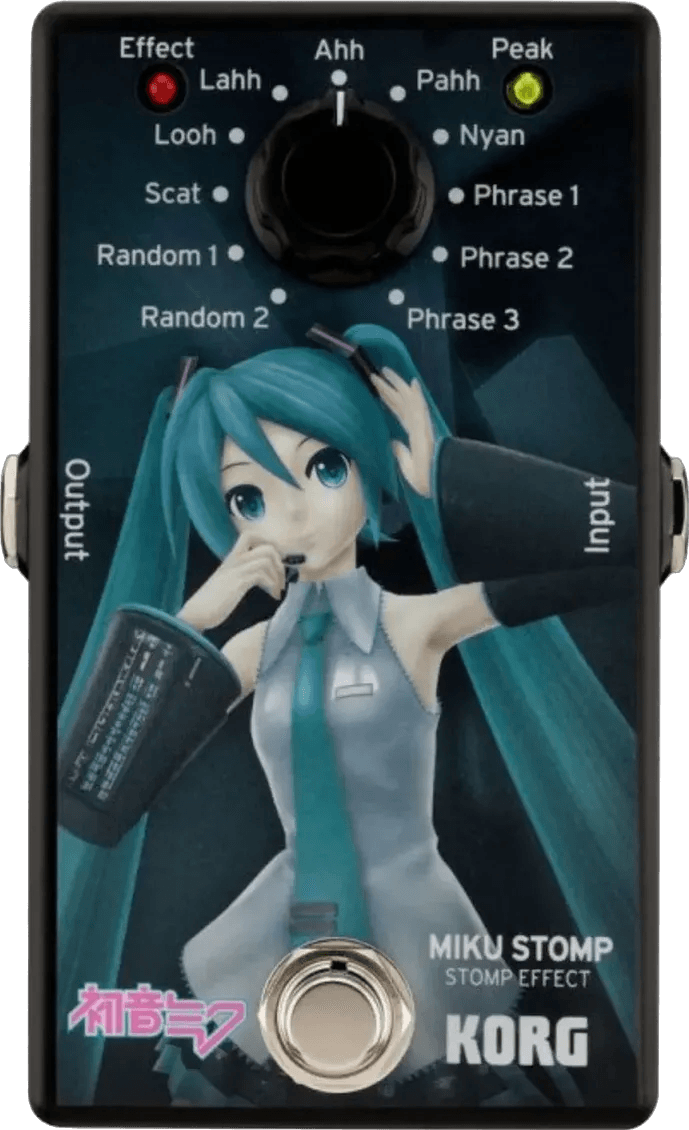 The Korg Miku Stomp is a vocal synthesizer effects pedal that generates Hatsune Miku vocal sounds based on your instrument’s input. It processes audio and converts your playing into sung lyrics, offering 11 selectable lyric patterns. The pedal includes preset lyrics for “Senbonzakura” and supports custom lyrics input via a dedicated iPhone application, allowing for user-defined vocal performances.