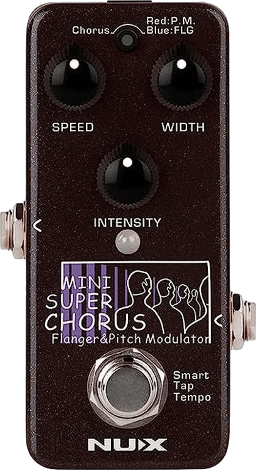The NUX Mini SCF (NCH-5) is a mini stereo modulation pedal designed to provide chorus, flanger, and pitch modulation effects. This NUX effects pedal uses advanced DSP for a dynamic range of 103dB and preserves a fully analog dry signal path to ensure low noise and zero latency. It features selectable true bypass or buffered bypass and supports stereo output via TRS connections. The Mini SCF also includes a smart tap tempo function for real-time control of modulation rates.