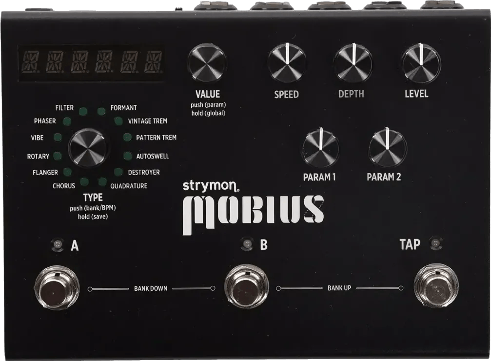 - Multi-effects modulation pedal providing tremolo, chorus, phaser, and more
