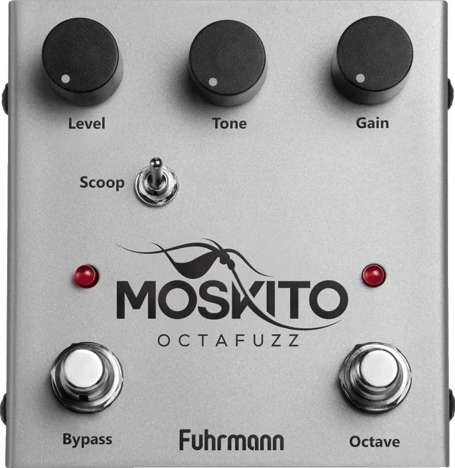 The Moskito is a fuzz pedal with a built-in natural harmonic octave effect. Designed for use with both guitar and bass, this stompbox produces distortion with added harmonic content, generating a layered octave above the dry signal. The pedal combines classic fuzz circuit characteristics with the upper-octave effect for increased harmonic richness and textural sound.