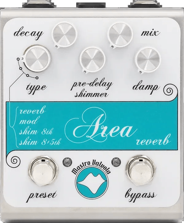 The Mastro Valvola Area is a multi reverb effects pedal designed to deliver a range of reverberation environments. Utilizing proprietary digital algorithms, this reverb stompbox offers four distinct reverberation effects, from subtle ambiences to expansive, atmospheric spaces. The Area maintains clarity of the dry signal while shaping the reverb character, ensuring defined sound quality. All parameters and controls are designed for precise and flexible adjustment, making this pedal suitable for detailed sound design and performance needs.