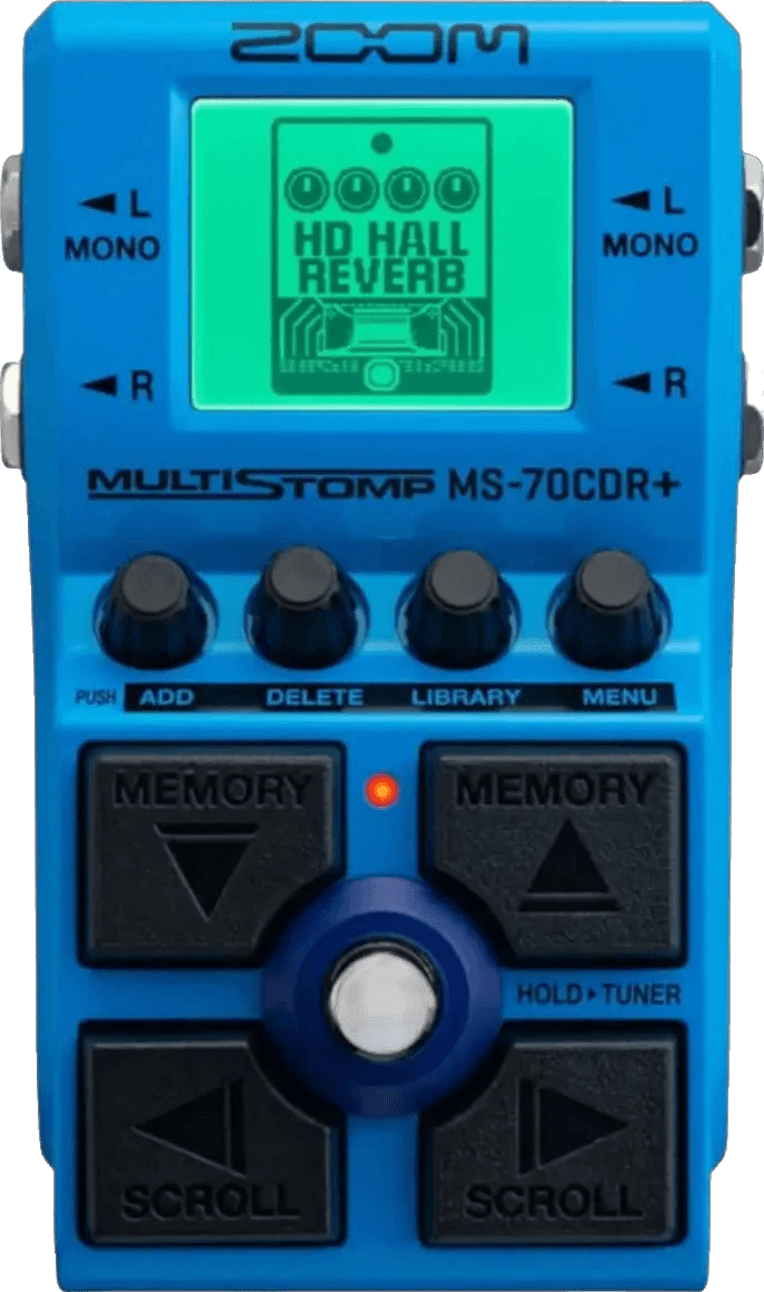 The Zoom MS-70CDR+ is a multi-effects processor pedal designed for creating a wide range of spatial sounds. This Zoom effects pedal provides access to 149 modulation, delay, and reverb effects, including analog chorus, digital delay, shimmer reverb, and more. Users can stack up to six effects together, allowing for versatile combinations in a single compact unit. Control options include straightforward parameter adjustment and an easy-to-read display interface. The MS-70CDR+ features true bypass switching to maintain signal clarity when the pedal is disengaged.