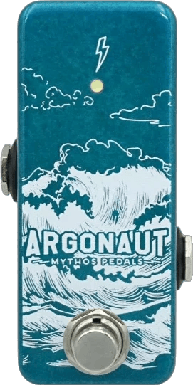 The Mythos Pedals Argonaut is an analog octave up effects pedal designed to deliver clean and distinctly pronounced octave-up sounds. Utilizing a pair of hand-matched NOS germanium diodes, this octave pedal provides a unique circuit for producing a rich octave effect across the entire instrument neck. When used independently, it can generate bright, harmonically complex tones reminiscent of a ring modulator. When paired with overdrive or fuzz pedals, the Argonaut delivers recognizable classic octave-up textures. The pedal features true bypass switching to maintain signal clarity and touch-responsive dynamics for versatile playability.