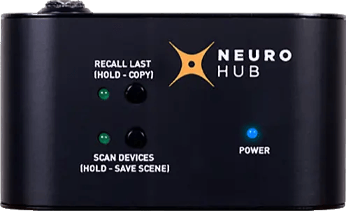 The Source Audio Neuro Hub is a MIDI controller hub designed to manage and synchronize multiple Source Audio effects pedals, including One Series and Soundblox 2 models. Serving as a centralized system, it enables the creation and instant recall of up to 128 multi-pedal presets, also known as "scenes," which can be accessed via MIDI Program Change messages. Users can connect and control compatible Source Audio effects pedals, save custom pedalboard configurations, and manage external controllers such as expression pedals and the Hot Hand Wireless Effect Controller. The Neuro Hub also connects to computers and iOS devices via USB for firmware updates and preset management.